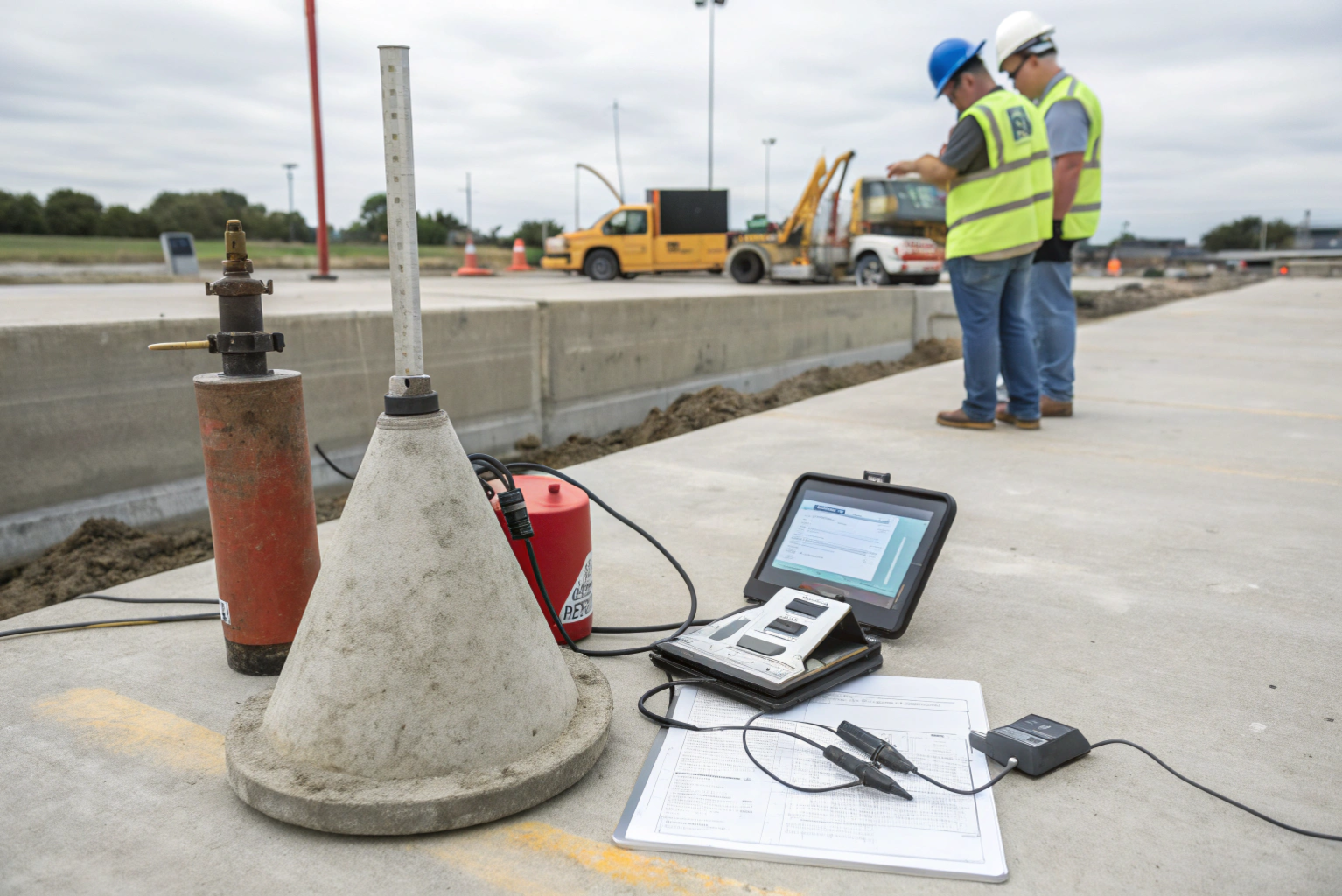 Fresh concrete testing with slump, air content, and temperature monitoring ensures every Logan concrete delivery meets exact specifications. Our delivery time tracking guarantees concrete arrives within optimal timeframes, while agitator drum monitoring maintains mix integrity throughout transport. Complete documentation provides full traceability from the batch plant to placement.